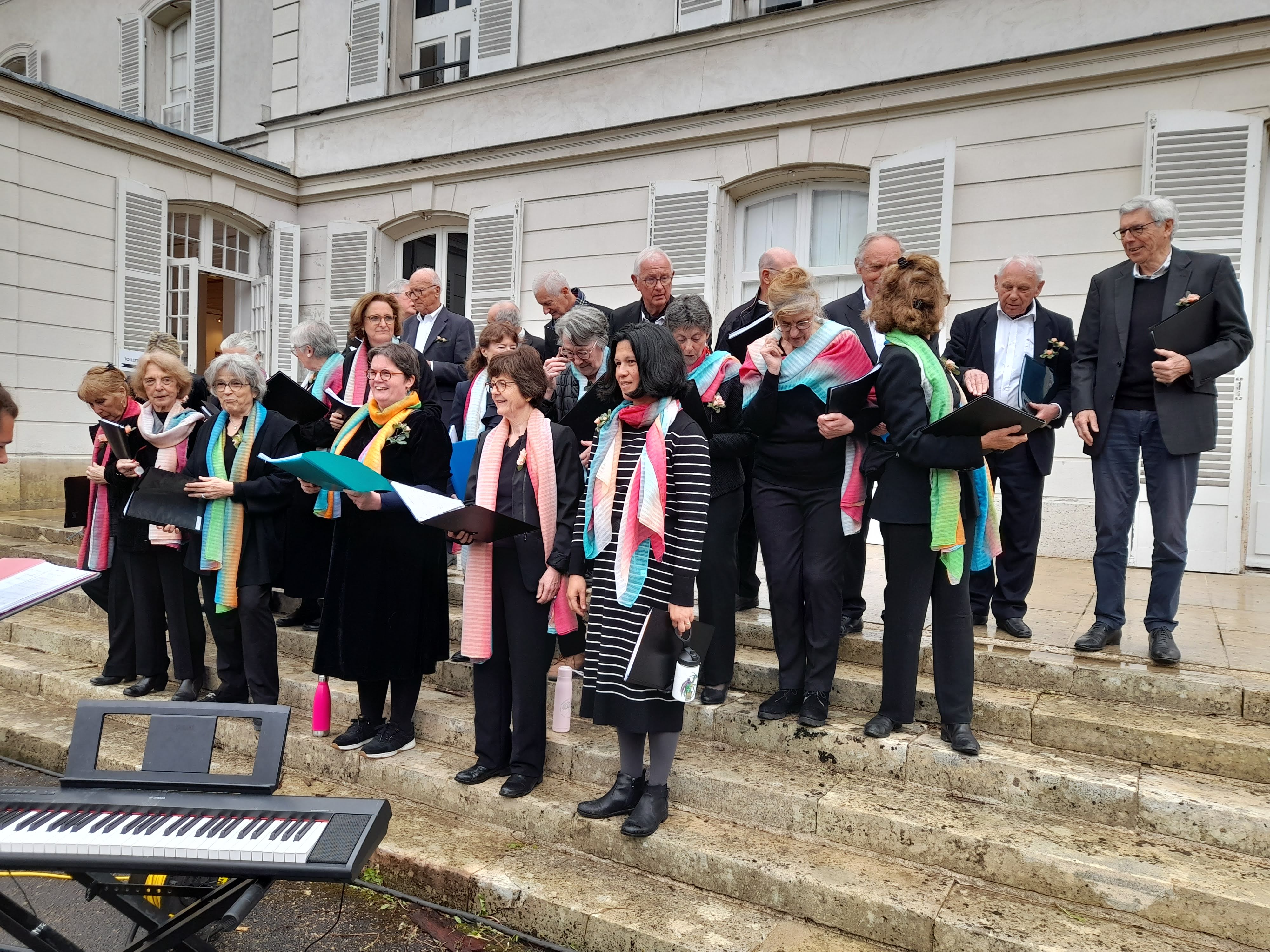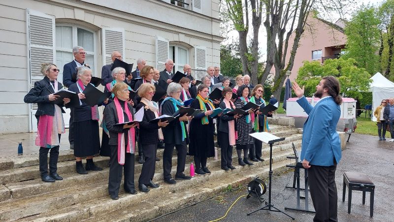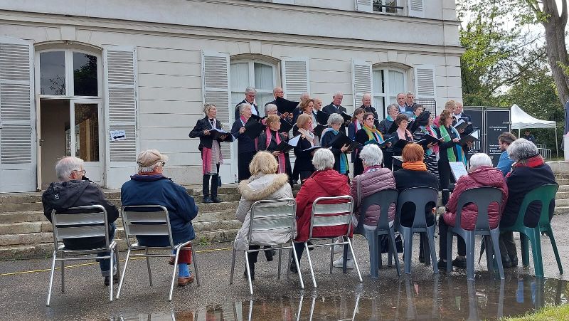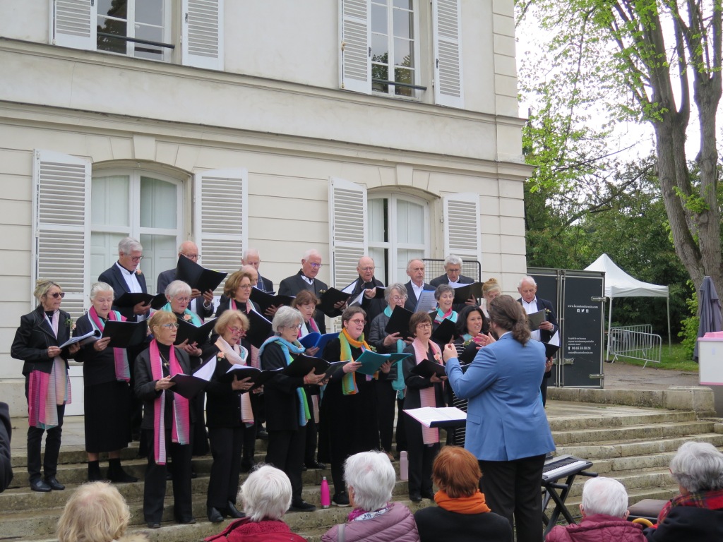 A l’occasion de la Fête des Fleurs et Jardins, organisée par la mairie de Louveciennes, malgré une météo peu encourageante, le chœur de Louveciennes a pu donner un concert sur la terrasse de la Maison de l’étang vers 16h30, sous la direction de notre chef et pianiste, Gaëtan Cavazzini.