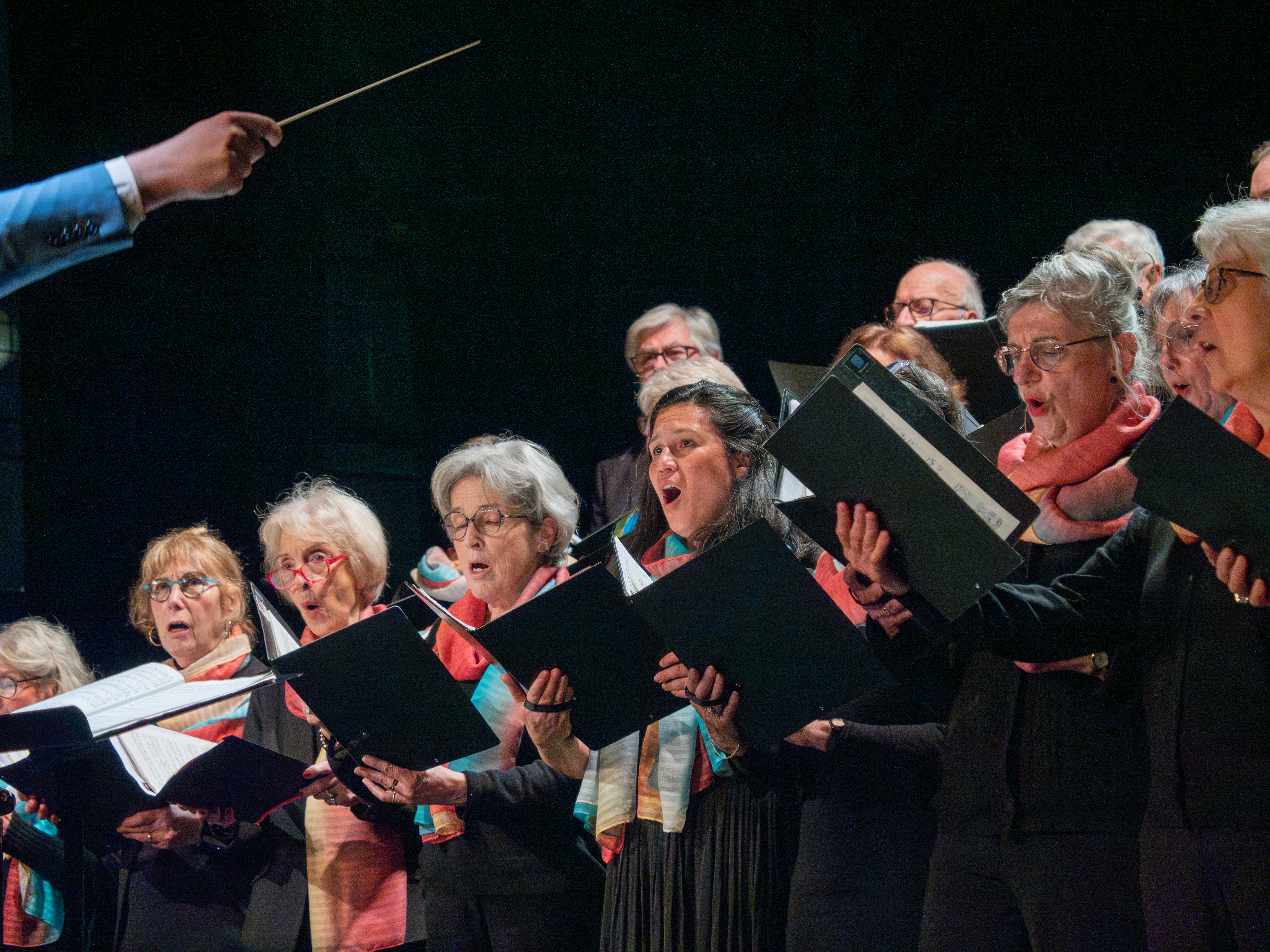 Les choristes de Louveciennes et de Meersburg chantent le dernier mouvement du Gloria de Vivaldi, sous la direction de Gaëtan Cavazzini