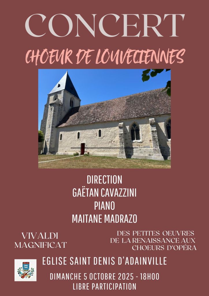 Dimanche 5 octobre 2025 à 18h, dans l’église d’Adainville, le Chœur de Louveciennes, dirigé par Gaëtan Cavazzini, vous invite à son concert de rentrée. Accompagné par un pianiste, nous vous proposons un voyage musical à travers une grande œuvre classique le Magnificat de Vivaldi, qui sera précédé de pièces variées allant de la Renaissance à des prières orthodoxes.